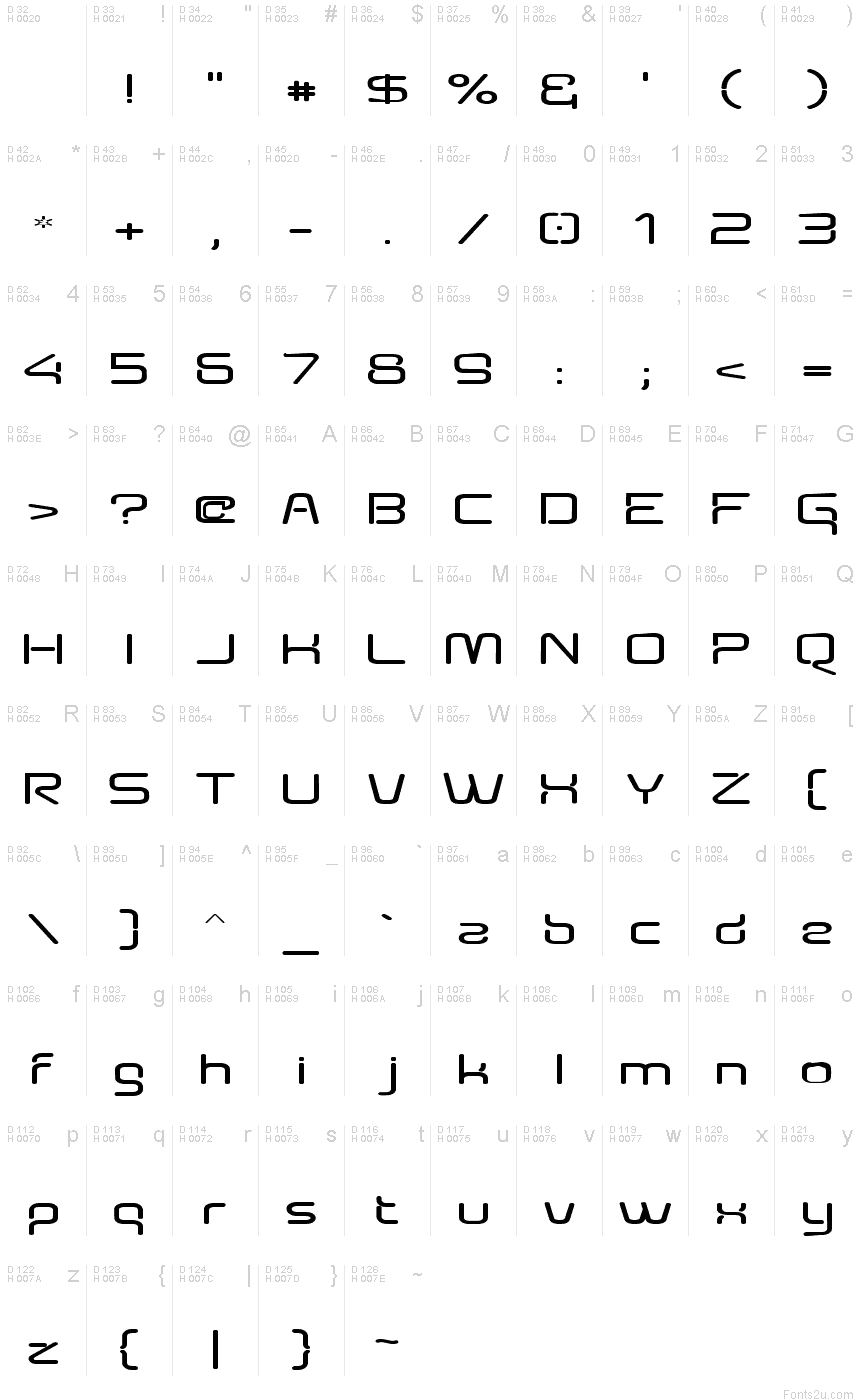 Benutzen Sie bitte das Pull-Down Menü um verschiedene Zeichentabellen, die in dieser Schriftart enthalten sind, zu sehen.