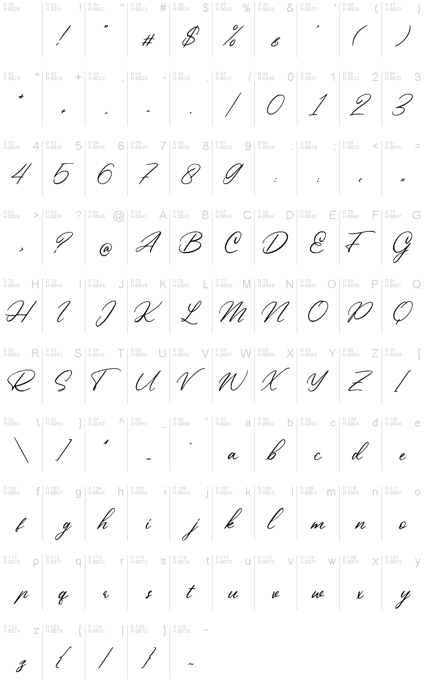 Benutzen Sie bitte das Pull-Down Menü um verschiedene Zeichentabellen, die in dieser Schriftart enthalten sind, zu sehen.