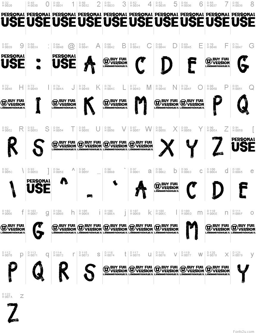 Benutzen Sie bitte das Pull-Down Menü um verschiedene Zeichentabellen, die in dieser Schriftart enthalten sind, zu sehen.