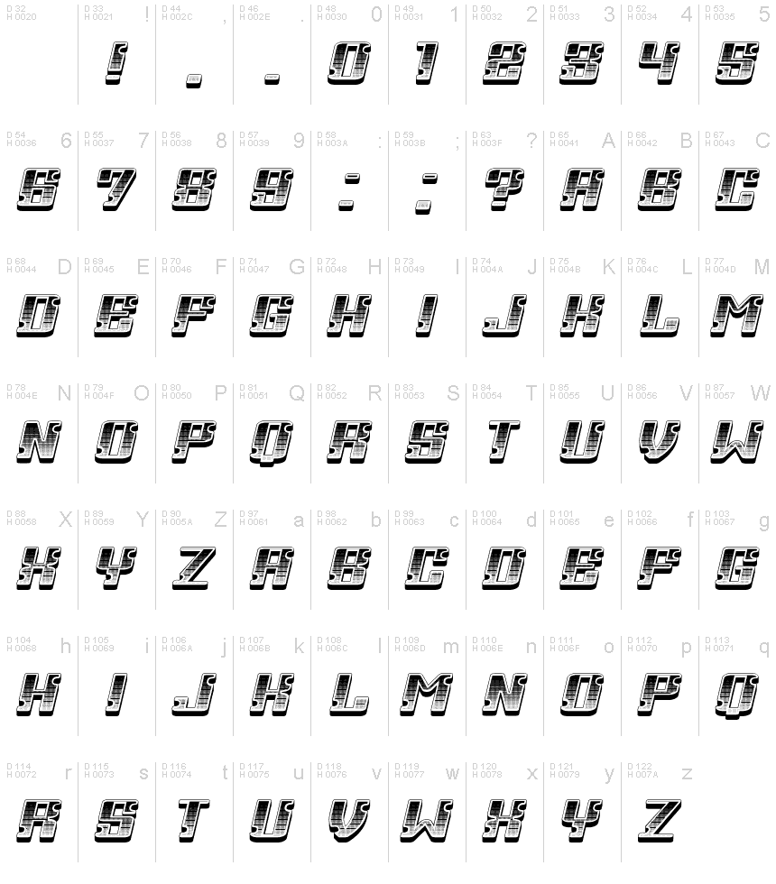 Benutzen Sie bitte das Pull-Down Menü um verschiedene Zeichentabellen, die in dieser Schriftart enthalten sind, zu sehen.