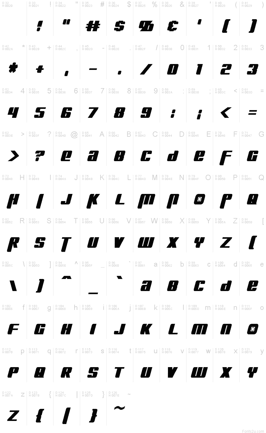 Benutzen Sie bitte das Pull-Down Menü um verschiedene Zeichentabellen, die in dieser Schriftart enthalten sind, zu sehen.