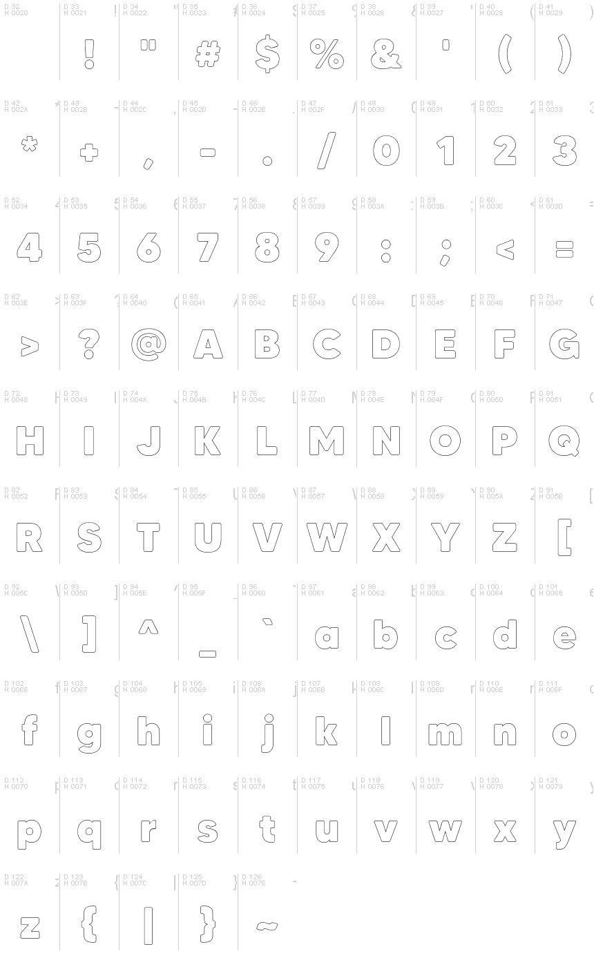 Benutzen Sie bitte das Pull-Down Menü um verschiedene Zeichentabellen, die in dieser Schriftart enthalten sind, zu sehen.