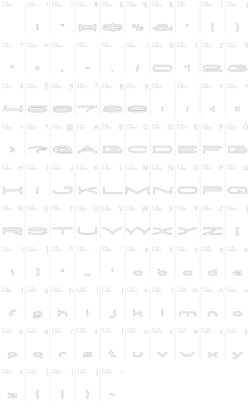 Benutzen Sie bitte das Pull-Down Menü um verschiedene Zeichentabellen, die in dieser Schriftart enthalten sind, zu sehen.