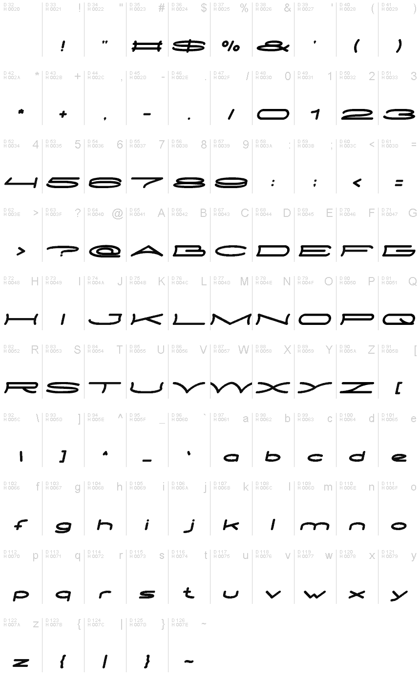 Benutzen Sie bitte das Pull-Down Menü um verschiedene Zeichentabellen, die in dieser Schriftart enthalten sind, zu sehen.