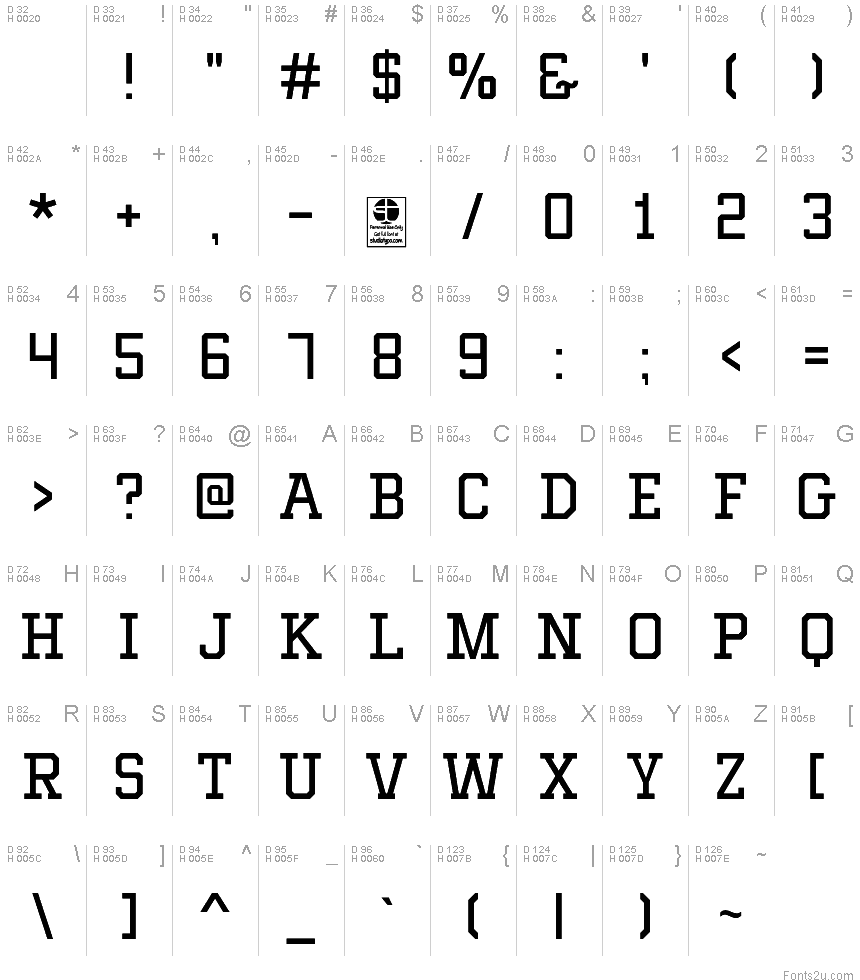 Benutzen Sie bitte das Pull-Down Menü um verschiedene Zeichentabellen, die in dieser Schriftart enthalten sind, zu sehen.