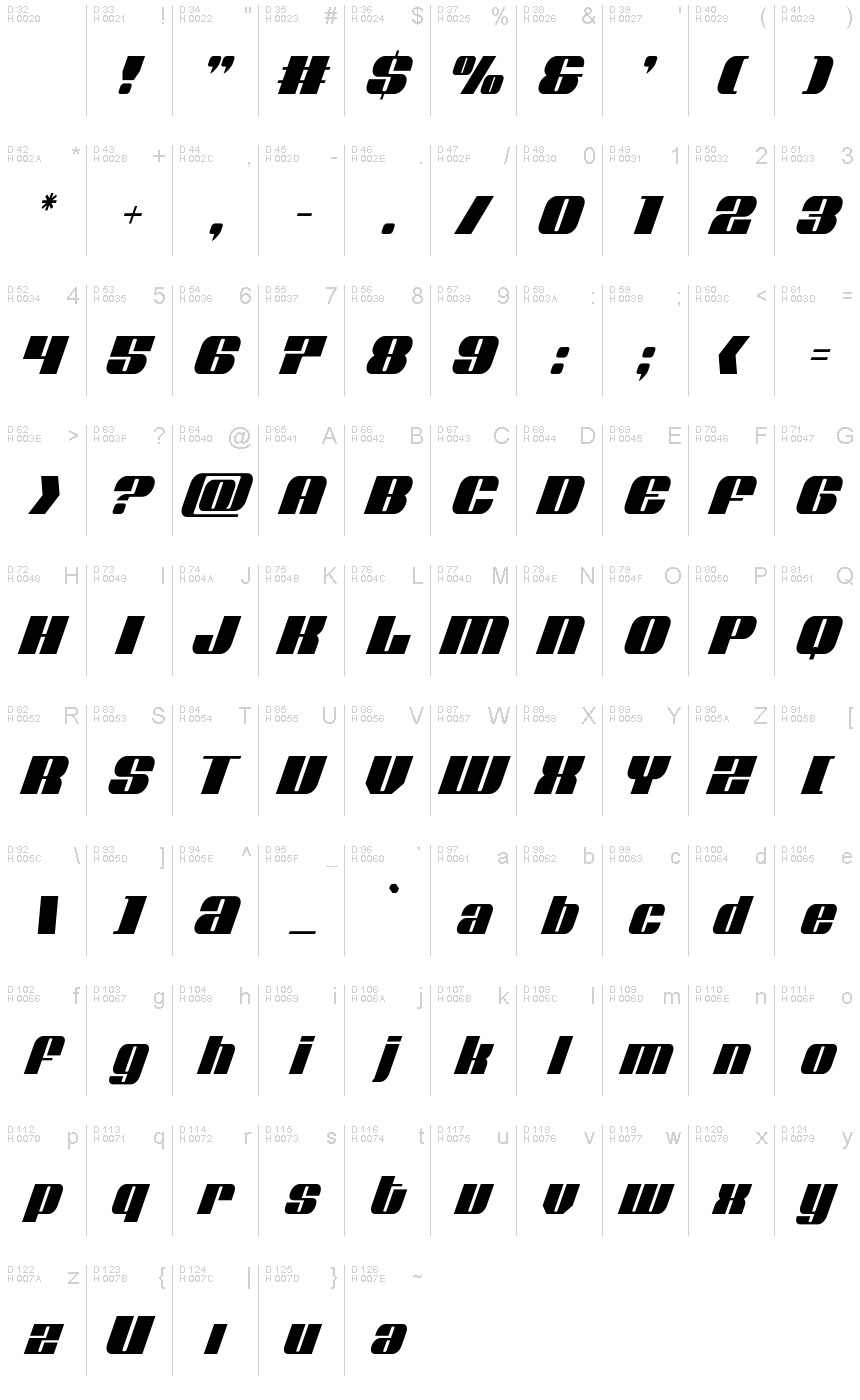 Nolo Contendre Condensed Italic's versatility shines through its ability to seamlessly integrate into diverse design contexts. From eye-catching headlines and logos to dynamic user interfaces and immersive digital experiences, this font's bold and condensed form lends itself well to projects that demand a strong, commanding presence. Its technical, futuristic style makes it an ideal choice for branding, advertising, and other design initiatives aimed at capturing the attention of a modern, tech-savvy audience.