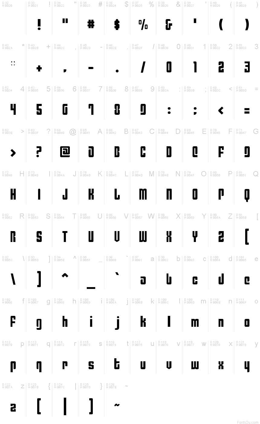 Benutzen Sie bitte das Pull-Down Menü um verschiedene Zeichentabellen, die in dieser Schriftart enthalten sind, zu sehen.