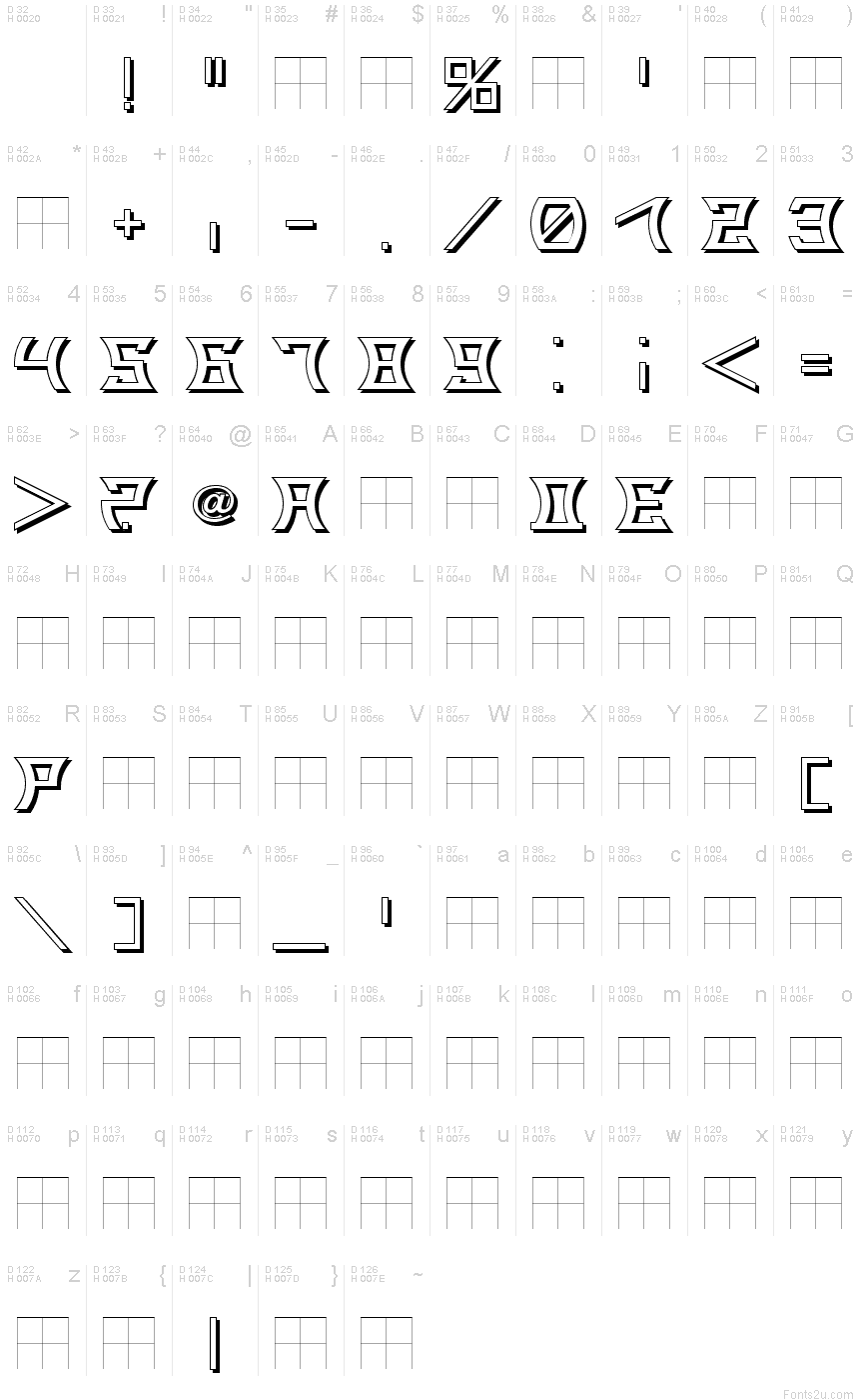 Benutzen Sie bitte das Pull-Down Menü um verschiedene Zeichentabellen, die in dieser Schriftart enthalten sind, zu sehen.
