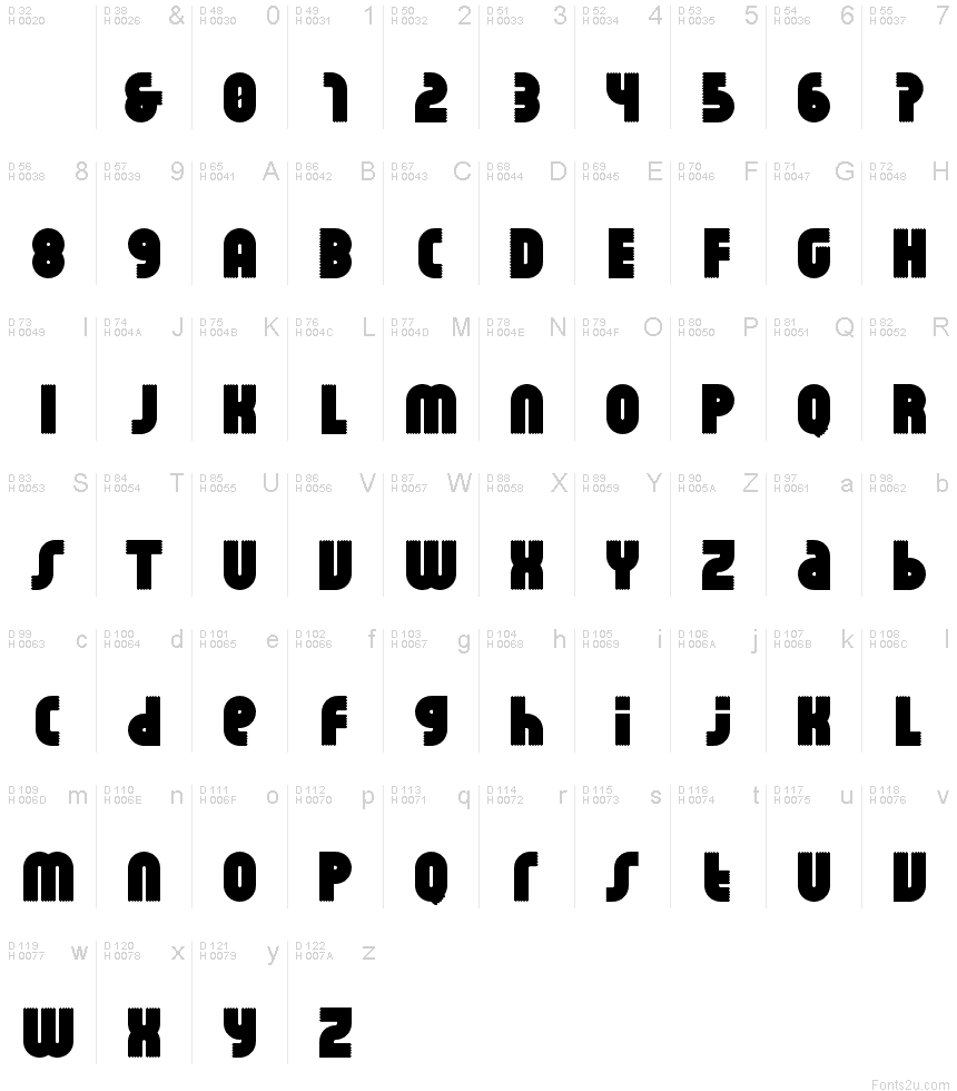 Benutzen Sie bitte das Pull-Down Menü um verschiedene Zeichentabellen, die in dieser Schriftart enthalten sind, zu sehen.