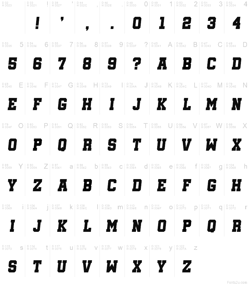 Benutzen Sie bitte das Pull-Down Menü um verschiedene Zeichentabellen, die in dieser Schriftart enthalten sind, zu sehen.