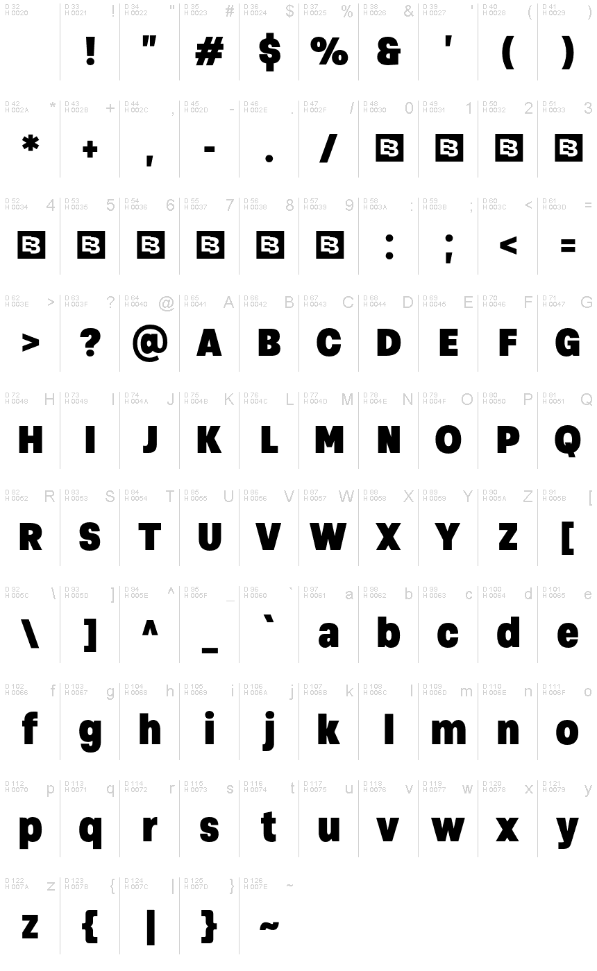 Benutzen Sie bitte das Pull-Down Menü um verschiedene Zeichentabellen, die in dieser Schriftart enthalten sind, zu sehen.
