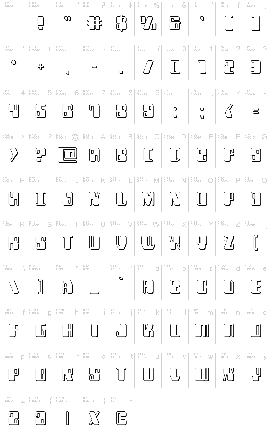 Benutzen Sie bitte das Pull-Down Menü um verschiedene Zeichentabellen, die in dieser Schriftart enthalten sind, zu sehen.